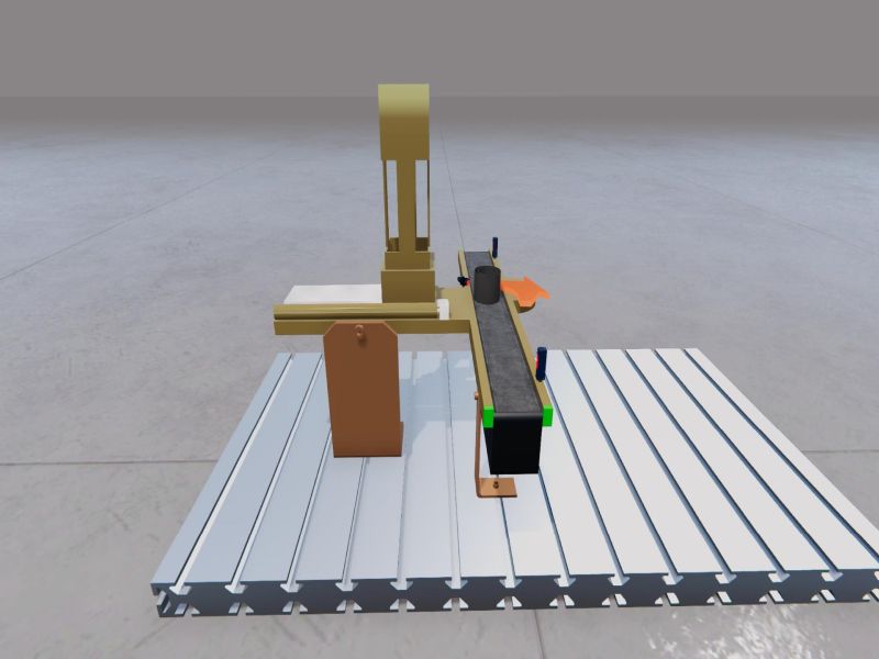 The objective is to transfer the parts from the loading station to the cross belt using the dispenser