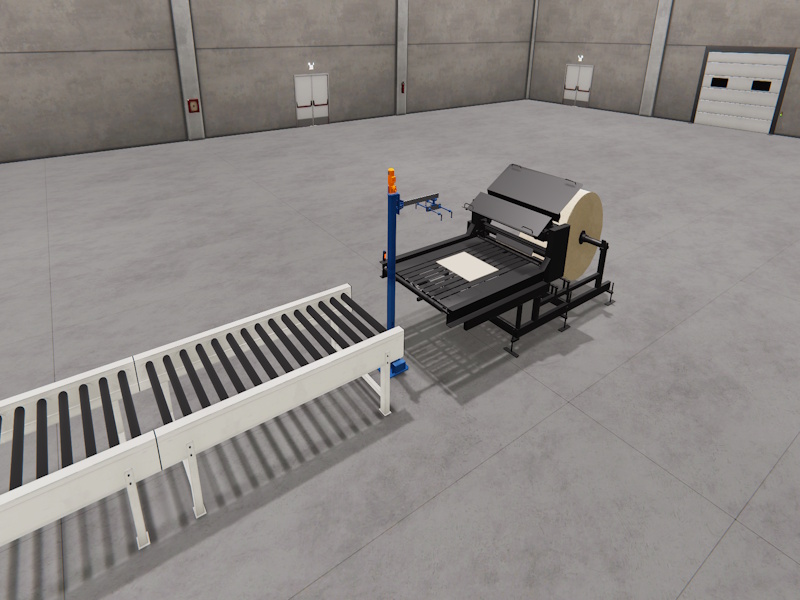 The purpose of this system is to cut 1-meter-long sheets of cardboard.
