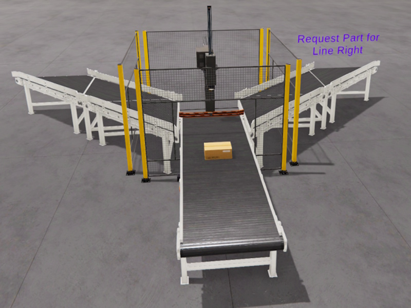 The information about what line the arm must to download, comes from the line, and uses two PLC inputs, if I.3 is on, it means the line right is requesting boxes, then the arm must to download there, if I.4 is on, the arm must to download in line Left.