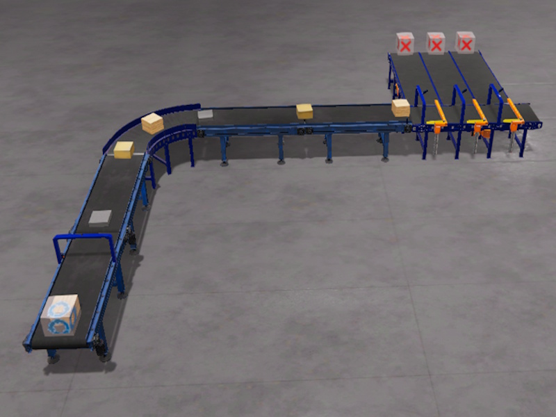 The pieces will circulate through the conveyor and will be classified upon reaching the classification area with the three ejection systems.